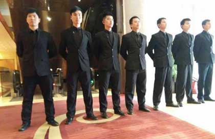 他們不僅具備良好的身體素質,還有強大的心里素質,面對突如其來的事情時,保鏢公司能夠冷靜處理。 什么樣的武術技能的人員適合做保鏢呢?自由搏擊、保鏢公司泰拳、無限制格斗等,其中無限制格斗是合適的。因為它無規(guī)則、無級別、無限制。它是一種永遠不會給對方任何機會的一種格斗技術。 在當今社會環(huán)境的基礎上,除了具備一定的格斗技能,法律知識、商務禮儀、駕駛技術等等也是當今富豪對保鏢的要求。保鏢的要求很嚴格,需要經(jīng)過嚴格的培訓和訓練,考核達標了才能當保鏢。